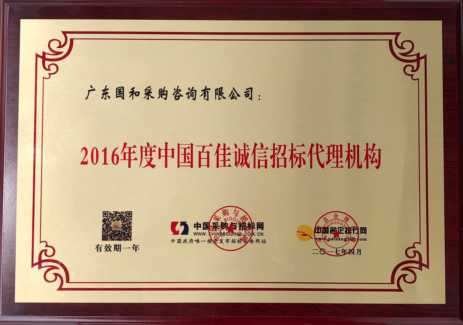 2016年度中國百佳誠信招標代理機構