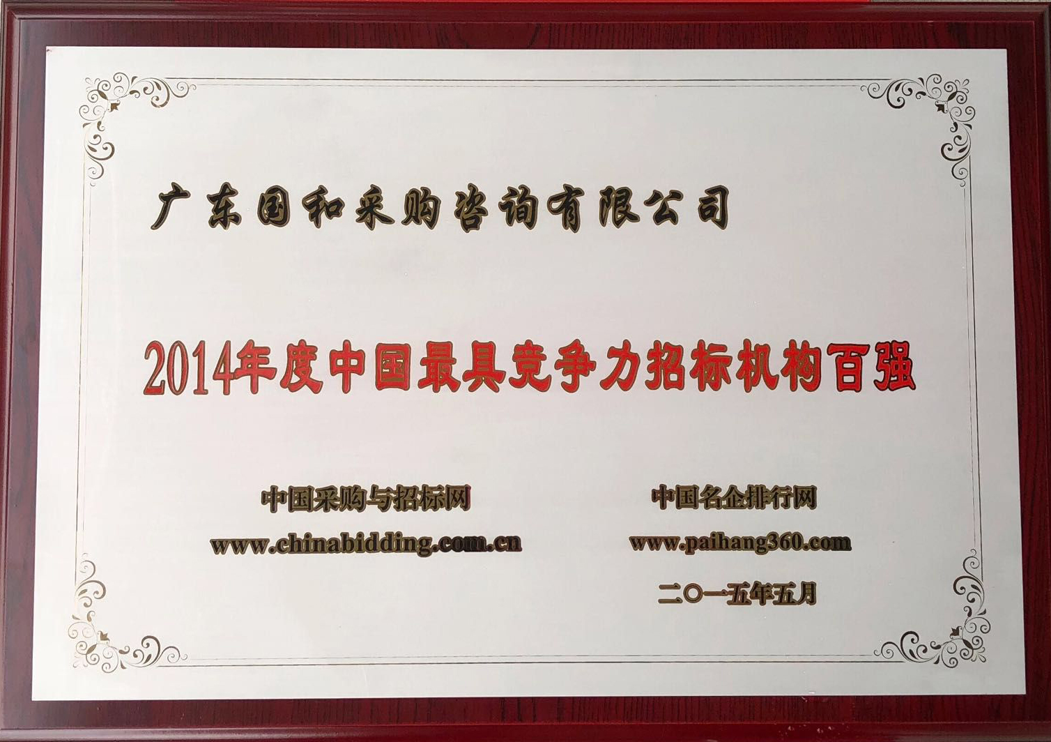 2014年度中國最具競爭力招標機構百強